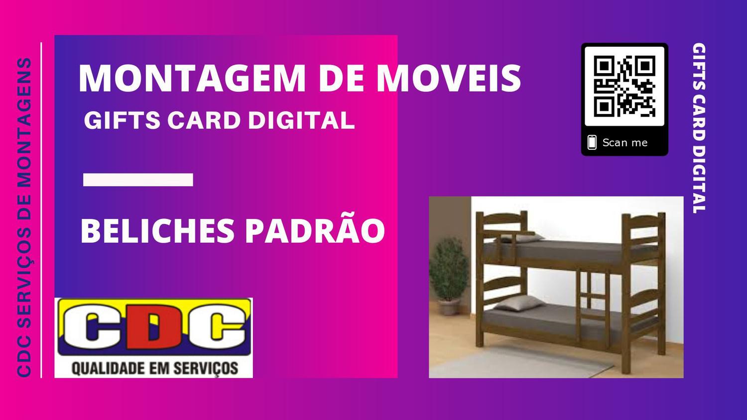 "Montagem de móveis de forma simples, rápida, prática e segura! Enviamos um montador profissional, experiente e certificado pelo nosso controle de qualidade e segurança. O QUE ESTÁ INCLUSO - Montagem dos móveis e limpeza do local. - Cola e pregos, caso sejam necessários. - Três meses de garantia. BENEFÍCIOS - Nossos montadores são qualificados e recebem treinamentos técnicos, práticos, comportamentais e sociais; - Monitoramos todos os trabalhos através de nosso sistema. Dessa maneira, evitamos que ocorram atrasos desnecessários nas visitas; - Após concluir a montagem, nosso técnico envia fotos do móvel e do local onde este foi montado para à nossa área de acompanhamento; - O cliente recebe em seu e-mail fotos do produto montado caso achar necessário; - Nossa Central de Acompanhamento recebe todas as informações em tempo real; - Depois de concluída a montagem, enviamos nossa Pesquisa de Satisfação ao cliente para garantir a qualidade de nossos serviços e profissionais. E TEM MAIS... - Todos nossos montadores são uniformizados; - Utilizam um tapete ou papelão sob a caixa de ferramentas, para proteger o piso; - Protegem também os móveis que estejam próximos ao local de instalação; - Informam ao cliente quando for necessário remover objetos decorativos; - Se necessário ,enviamos um segundo montador para apoio. -Montagem de ( um produto) . Termos e condições Válido apenas para resgate pelo serviço de montagens da CDC QUALIDADE . É preciso ser maior de 18 anos. O valor total do cartão será creditado à sua conta da CDC QUALIDADE no ato do resgate. O prazo máximo para utilização é de seis meses após a compra. ATENÇÃO - FEITO A COMPRA , CASO NÃO TENHA RETORNO EM 48 HORAS , ENTRAR EM CONTATO PELO TELEFONE -17-3011-1126 QUE TAMBÉM É WHATTS APP